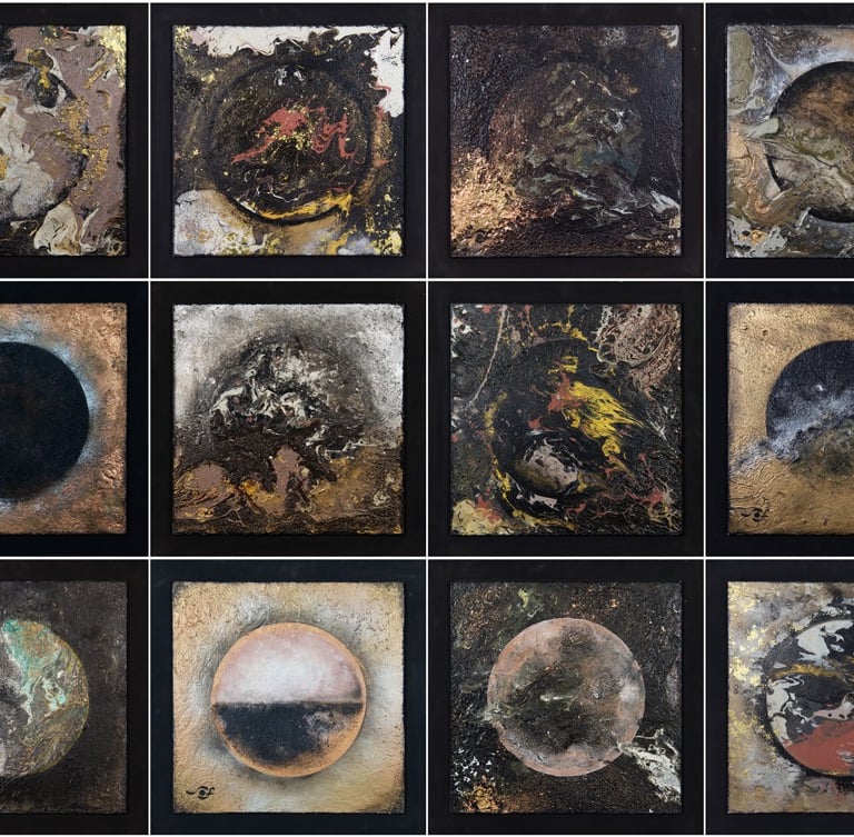 Fragments of ideas, reassembled through mixed media and unconventional materials.