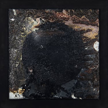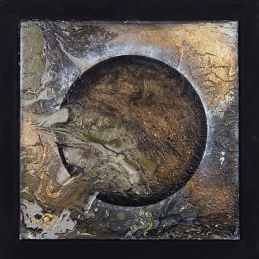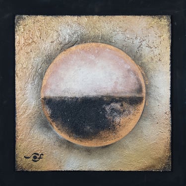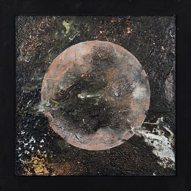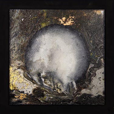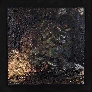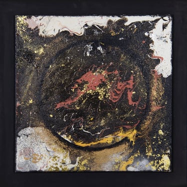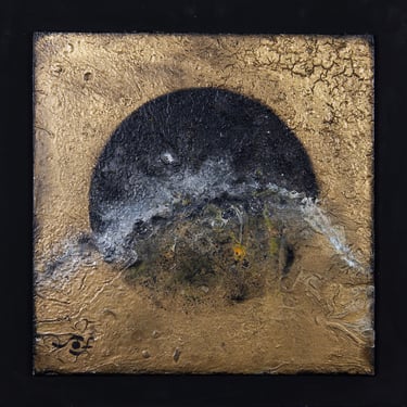 Composed with layered acrylic and gouache paint, delicately infused with gold and silver leaf, the surface speaks of quiet dissolution and the beauty of impermanence.