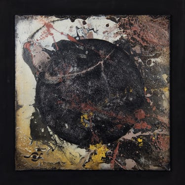 The painting’s matte finish conserves the delicate interaction between material and meaning, allowing the viewer to engage with its spiritual and philosophical undertones.