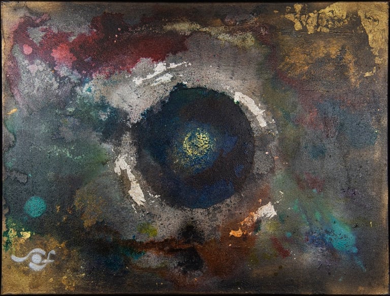 The colours flow and collide like chemical reactions, whispering of ancient matter, cosmic forces, and questions that remain unanswered:
