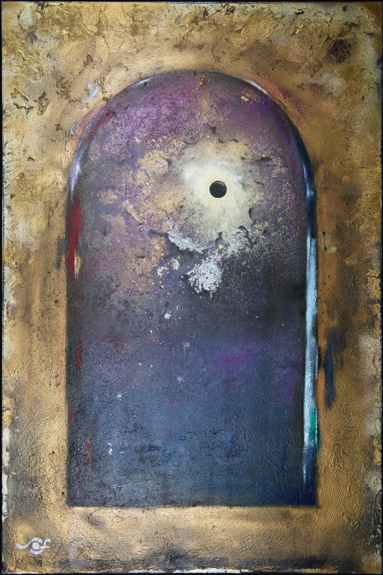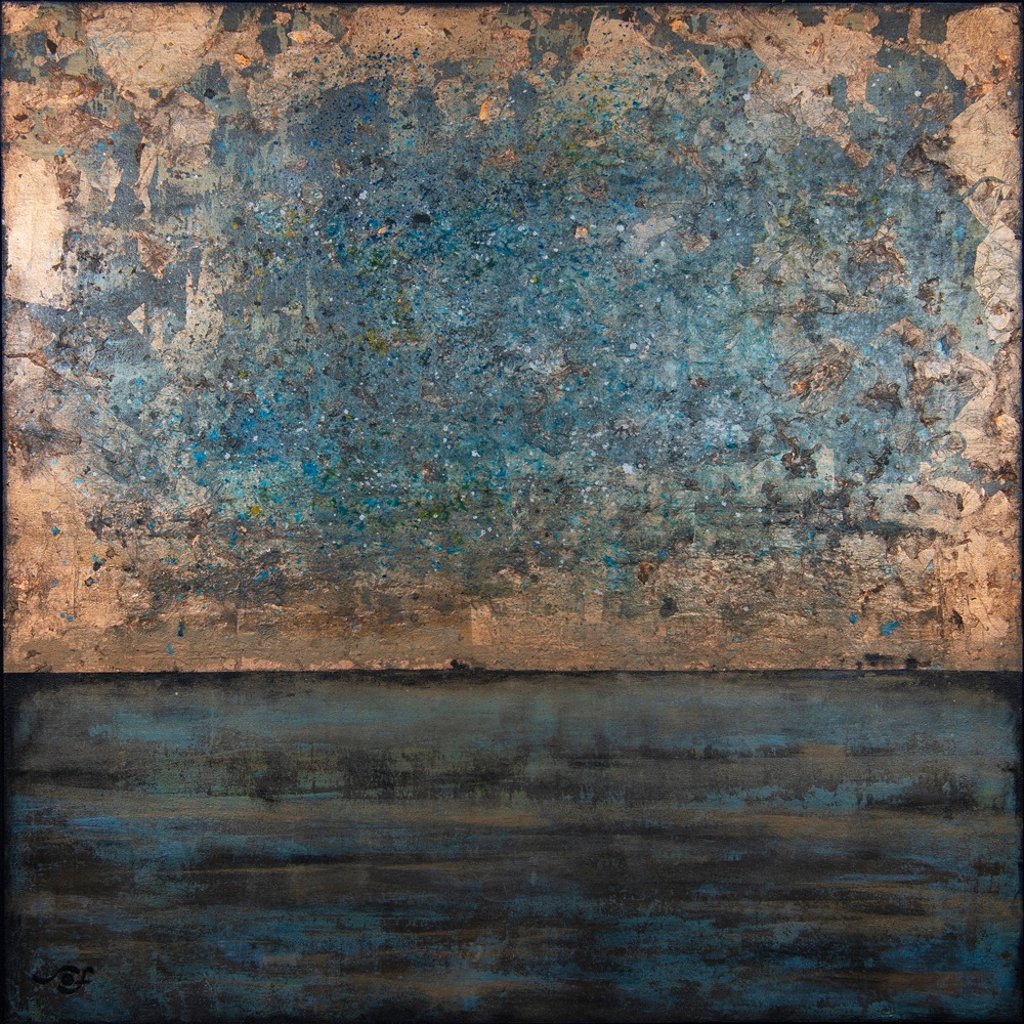 Technique: Acrylic and metallic paint with gold and bronze leaf on canvas