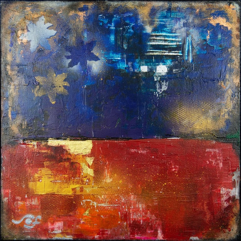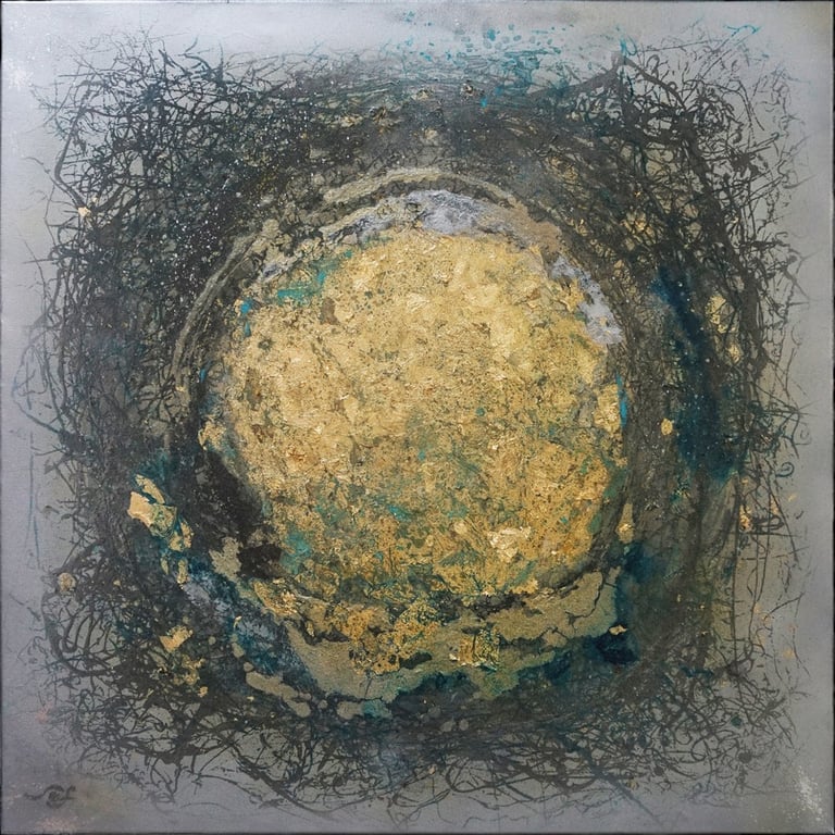 This collection brings together diverse abstract and impressionistic works, unified not by subject but by spirit and style. Most of the paintings are enriched with gold, silver, bronze leaf, or metallic tones, giving them a refined brilliance and timeless depth.