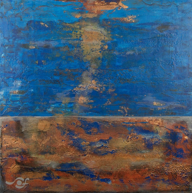 Technique: Acrylic and metallic paint with bronze leaf on canvas